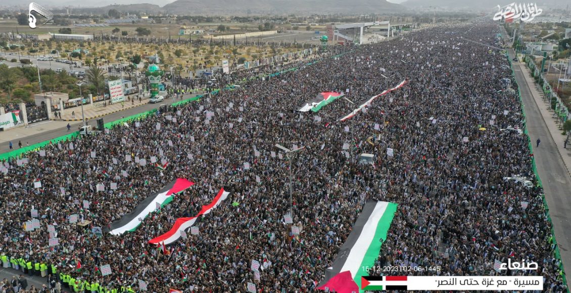 وطالب المشاركون في المسيرة الكبرى، القوات المسلحة والقوة البحرية بالاستمرار في عملياتها النوعية حتى يوقف العدو الصهيوني الأمريكي عدوانه وحصاره على الشعب الفلسطيني بشكل كامل.
