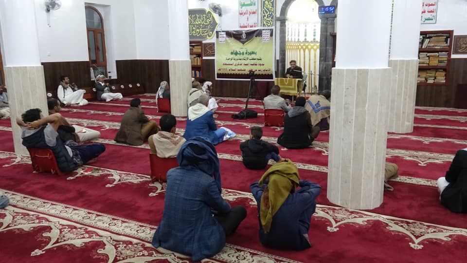 نظم مكتب الإرشاد بمديرية الوحدة بأمانة العاصمة، اليوم السبت، ندوة ثقافية إحياءً لذكرى إستشهاد الإمام زيد بن علي -عليهما السلام- 1444هـ، وذلك تحت عنوان: (بصيرة وجهاد).