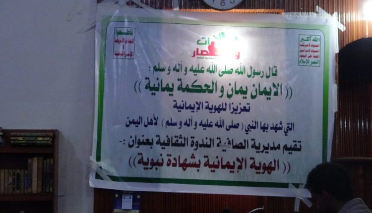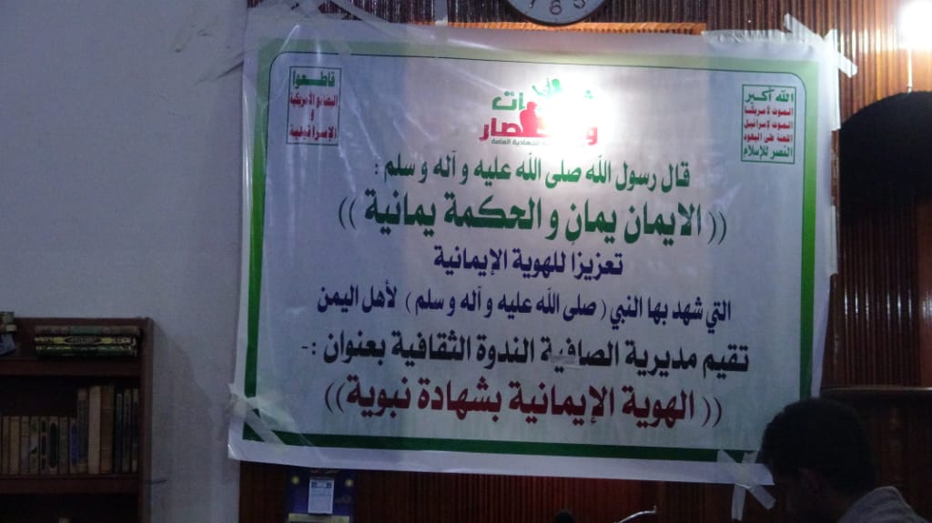 اقيم بمديرية الصافية ندوة مركزية بمديرية الصافية بعنوان (الهوية الايمانية بشهادة نبوية) والتي اقيمت في مسجد الدعوة افتتحت الندوة بايات من الذكر الحكيم تلاها كلمة ثقافية القاها أ.ابرهيم البوصي التي حث فيها شعبنا اليمني العظيم الي التحرك الي المحافظة ع الهوية وان العدوان يسعي بكل ما لدية من جهد الي استهداف الهوية الايمانية للشعب اليمني وان خمسة اعوام ونحن صامدان نواجهة عدوان غاشم من قبل التحالف العالمي وذكر ان مفهوم الهوية هي الانتماء التي ينتمي اليه الشخص والانتماء هو الايمان وقد حصد العدوان الخيبات بعد الخيبات والهزائم بعد الهزائم خلال الخمسة اعوام وان السبب وراء ذلك هو صبر الشعب اليمني وتمسكهم بالله وان العدوان لا يستطيع ان يحقق اي شي عسكري فلجاء الي الحرب الاعلامية وما تم اسقاط العراق الا اعلاميا هذا وقد جند الامريكي والاسرائلي جيش اعلامي اذا ارادوا اسقاط دولة بدون خسائر.