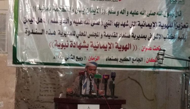 أقامت مديرية صنعاء القديمه ندوه بعنوان الهوية الايمانية شهادة نبويه اقمها الاستاذ خالد المداني في رحاب الجامع الكبير بين صلاه المغرب والعشاء وتحدث في الندوه عن الهوية الايمانيه والثقافات الدخيله علي آهالي صنعاء القديمه وعدة مواضيخ اخراء نالت استحسان الحاضرين حضر الندوه الاستاد زياد الرفيق مدير عام التربية وجمع غفير من الشخصيات الاجتماعية والوجهاء ومن عامة المجتمع.