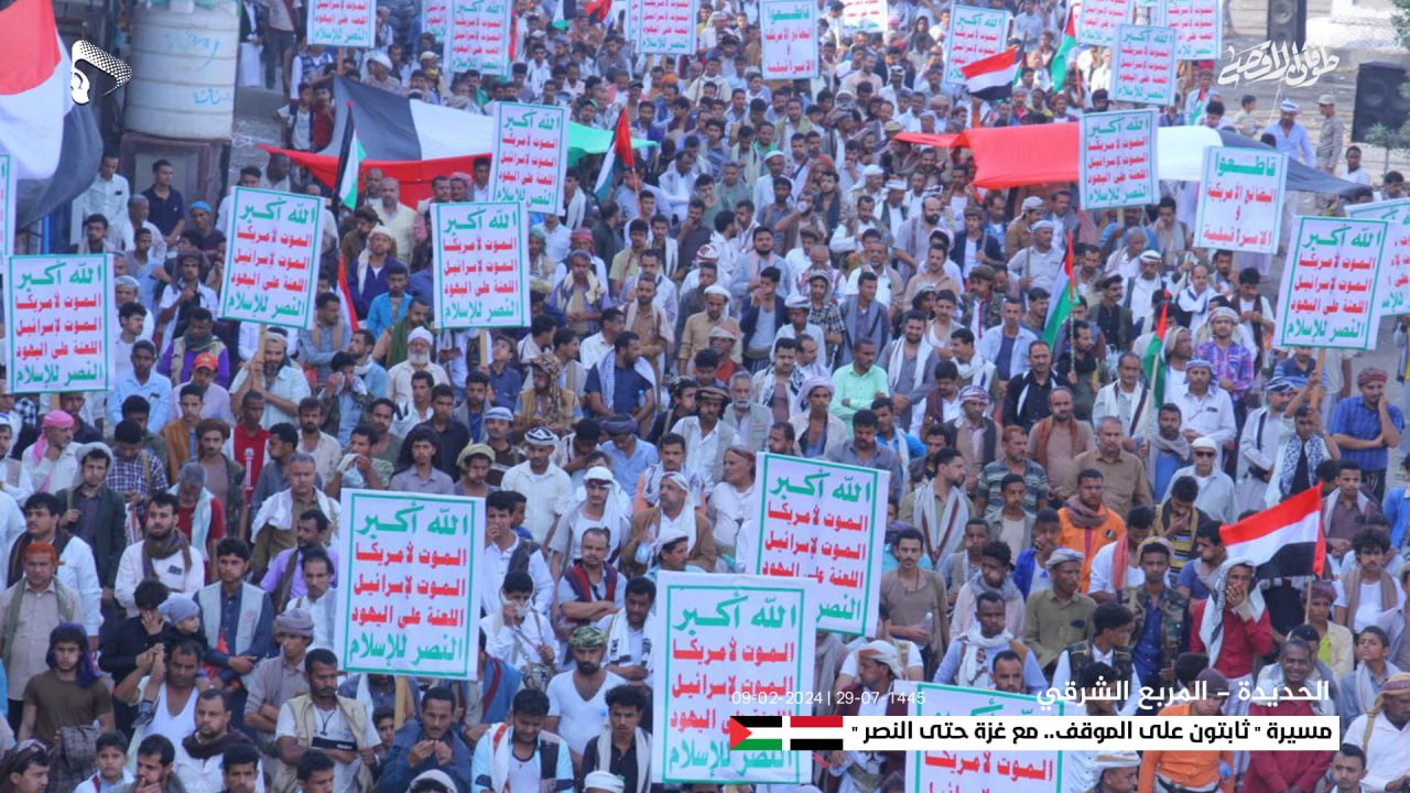نصرة للشعب الفلسطيني ومواجهة للعدوان الأمريكي البريطاني.. مسيرات حاشدة في الحديدة