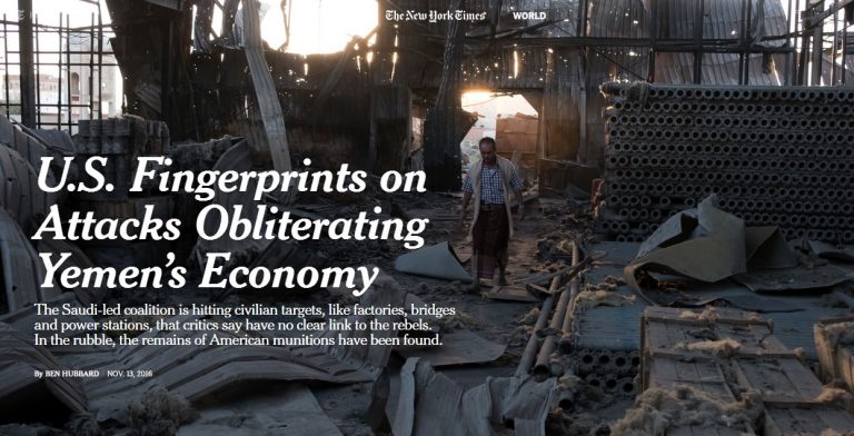 أكدت صحيفة “نيويورك تايمز” أن هناك بصمات أمريكية واضحة في الغارات الجوية التي شنها طيران العدوان، والتي استهدفت تدمير اقتصاد اليمن.