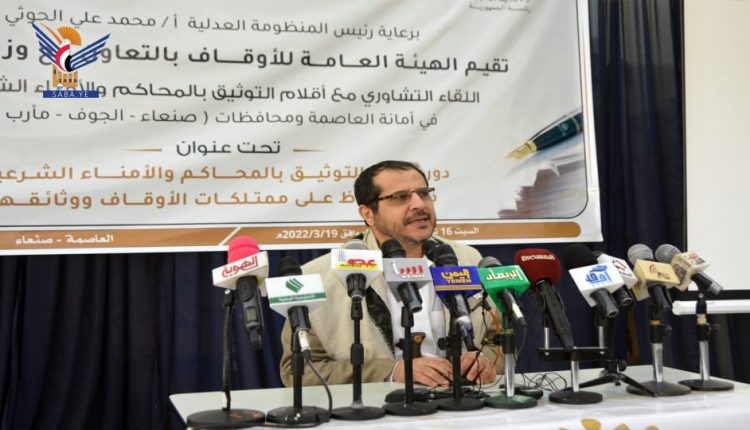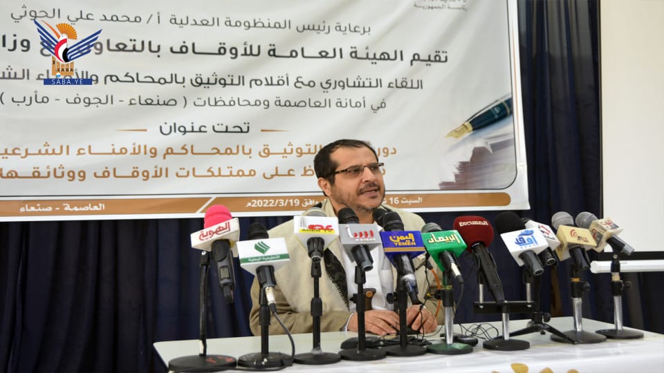 بدوره، أشار رئيس الهيئة العامة للأوقاف، العلامة عبدالمجيد الحوثي، إلى حرص الهيئة على تعزيز الشراكة مع وزارة العدل، ممثلة بأقلام التوثيق والأمناء الشرعيين، انطلاقاً من أهمية دقة التوثيق للمحررات الشرعية، سواء أراضي دولة أو أوقاف وغيرها.