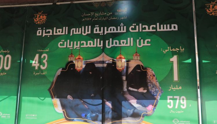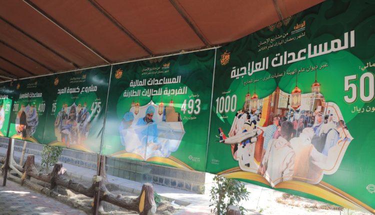 ولفت أبو نشطان إلى المجال الثالث شمل أيضاً، دعم مراكز رعاية وإيواء المتشردين “المرضى النفسيين غير المصحوبين” لعدد 250 مستفيد بتكلفة 150 مليون ريال، ومساعدات النازحين من أبناء” حيس والخوخة وجبل رأس” بالحديدة لعدد 2000 مستفيد بتكلفة 50 مليون ريال، ودعم الأفران والمطابخ الخيرية لعدد 2000 أسرة بقيمة 100 مليون ريال، والمساعدات المالية الفردية الطارئة بإجمالي 493 مليون ريال، وصرف مساعدات نقدية للفقراء في كشوفات مستثمري الكسارات عدد 10 آلاف مستفيد بتكلفة 200مليون ريال، وتكريم العلماء عدد 1300 مستفيد بتكلفة 200 مليون ريال.