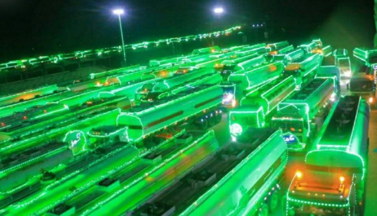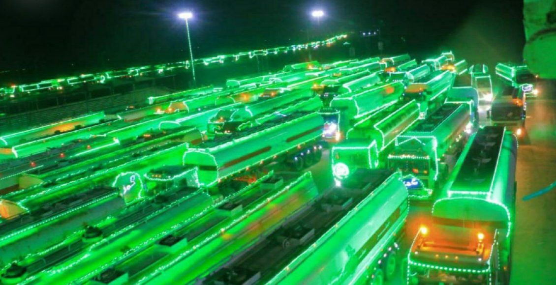 وصلت إلى مدينة الحديدة مساء اليوم، مسيرة ضوئية تضم 450 قاطرة مشتقات نفطية، تتلألأ بأنوار البهجة المحمدية وحلل الحفاوة بقدوم ذكرى المولد النبوي الشريف.