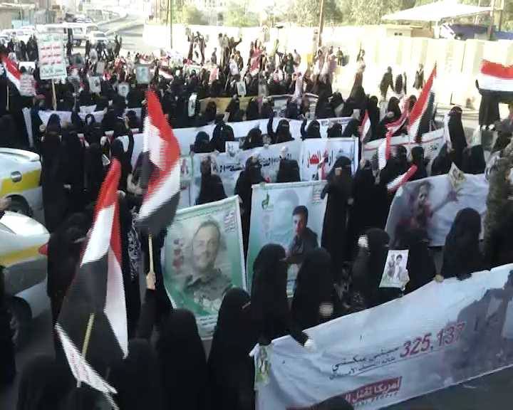 وفي ذات المكان أيضا كان لمنظمات المجتمع المدني وعدد من أسر وعوائل ضحايا غارات العدوان الأمريكي السعودي موقفهم الساخط والمندد بمواقف الأمم المتحدة التي تراوح مكانها ضاربة بكل المجازر عرض الحائط مدينين في ذات الوقت تفرجها على قتل اليمنيين تحت الحصار والجوع.