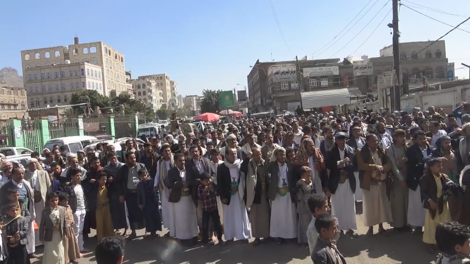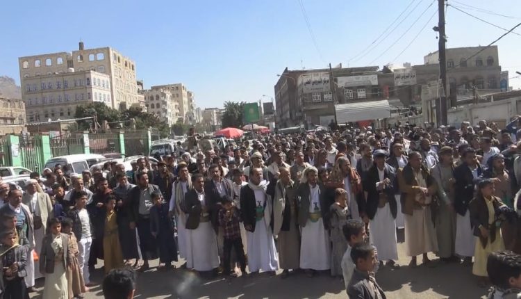 ونددوا في وقفة احتجاجية عقب صلاة الجمعة اليوم امام جامع التوحيد ، بقرار وزارة الخارجية الأمريكية بتصنيف “أنصار الله” ضمن قائمة الجماعات الإرهابية.