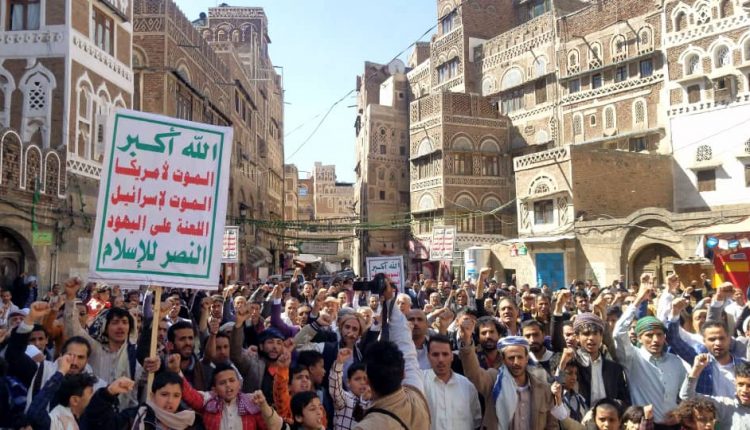 وقفات احتجاجية بمديرية صنعاء القديمة تؤكد : قرار إدارة ترامب سخيف وهزيل وبائس