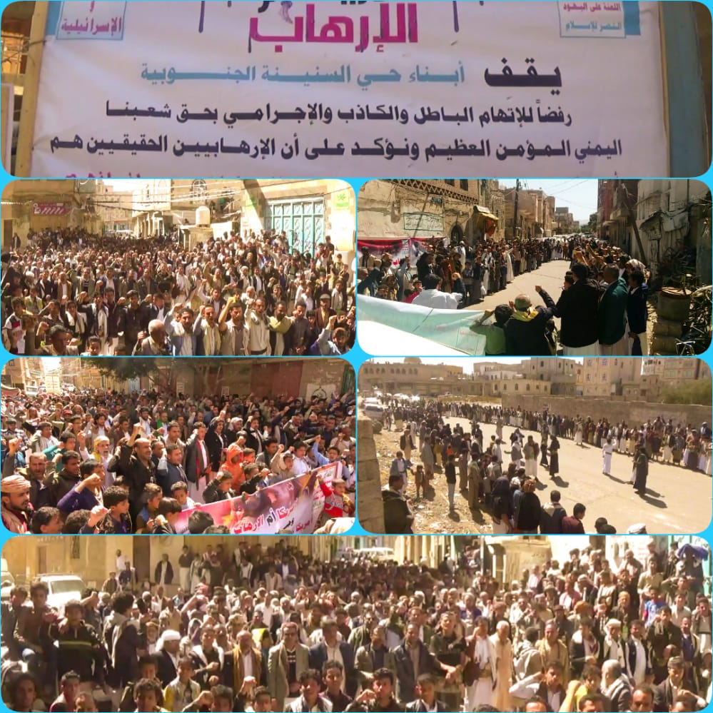 عبر أبناء مديرية معين بأمانة العاصمة عن رفضهم لبيان وزارة الخارجية الأميركية بتصنيف أحرار اليمن المناهضين للعدوان وتوزيع تهم الإرهاب على كل من يناهض السياسة الأمريكية وخطوات التطبيع المخزية مع الكيان الصهيوني الغاصب.