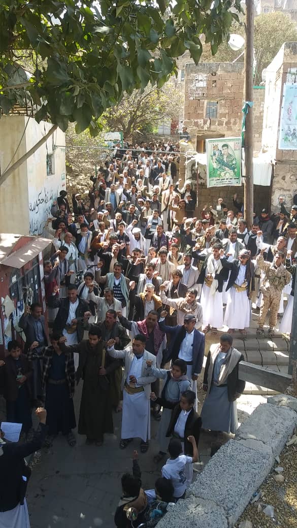 أٌقيمت بمديرية السبعين عقب صلاة الجمعة اليوم، وقفات احتجاجية منددة بجرائم العدوان والحصار والقرار الأمريكي بتصنيف أنصار الله منظمة إرهابية.