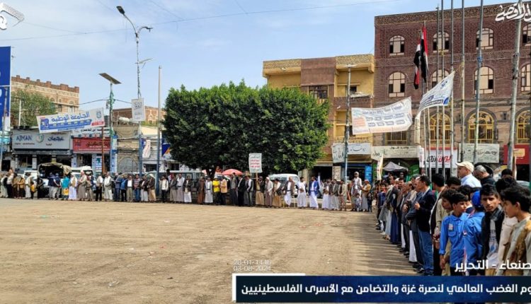 وهتف المشاركون في الوقفات الحاشدة، بالنصر لغزة والخزي والعار للصهاينة وكل من تحالف معهم من الامريكان والبريطانيين والعرب، وتأكيد استمرار وقوف الشعب اليمني الكامل مع مظلومية الشعب الفلسطيني الصامد، في كل المجالات وبكل ما يستطيع.
