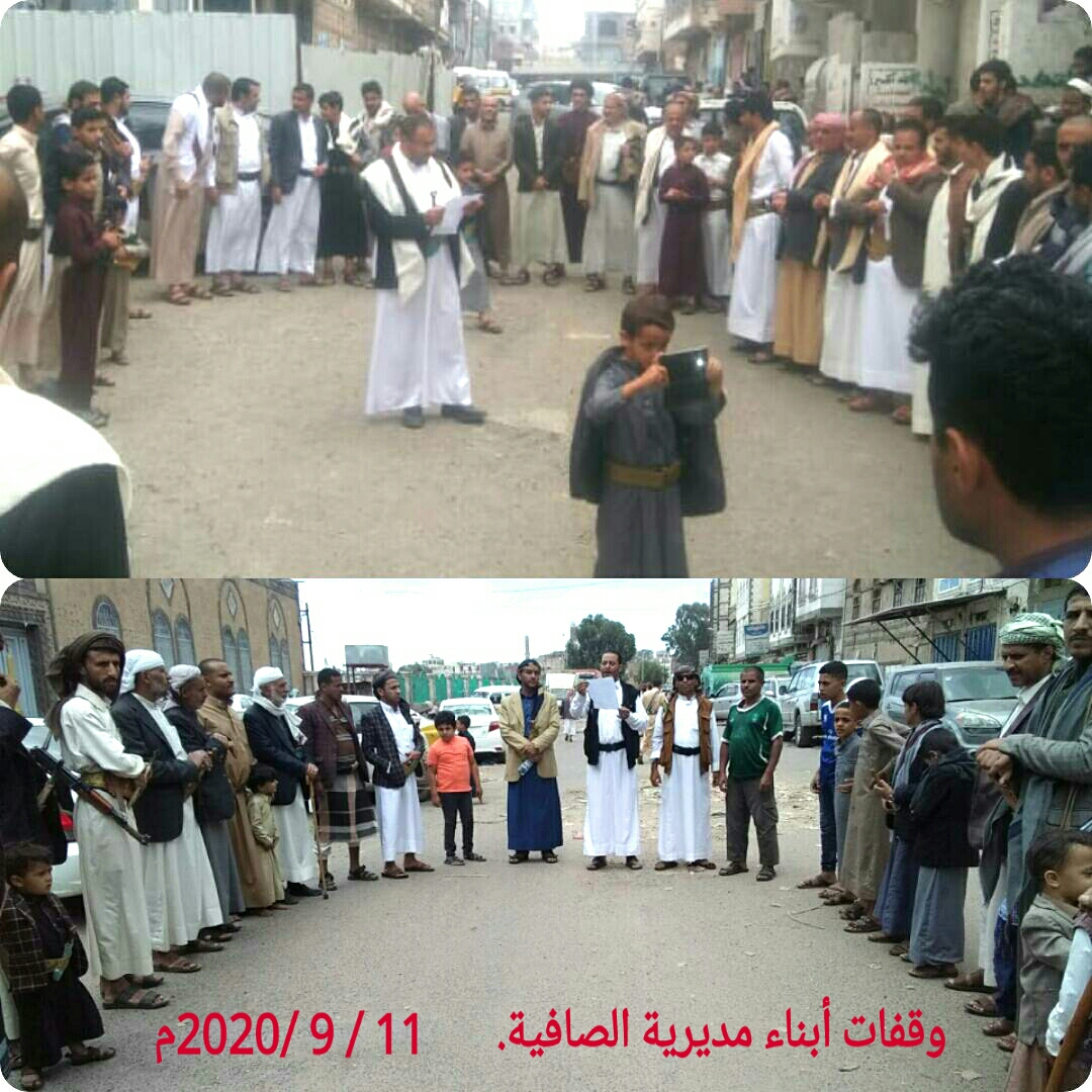 ندد أبناء مديرية الصافية في الوقفات الاحتجاجية الشعبية عقب صلاة الجمعة باستمرار دول العدوان بالحصار الجائر واحتجاز ومنع دخول سفن المشتقات النفطية .