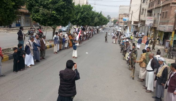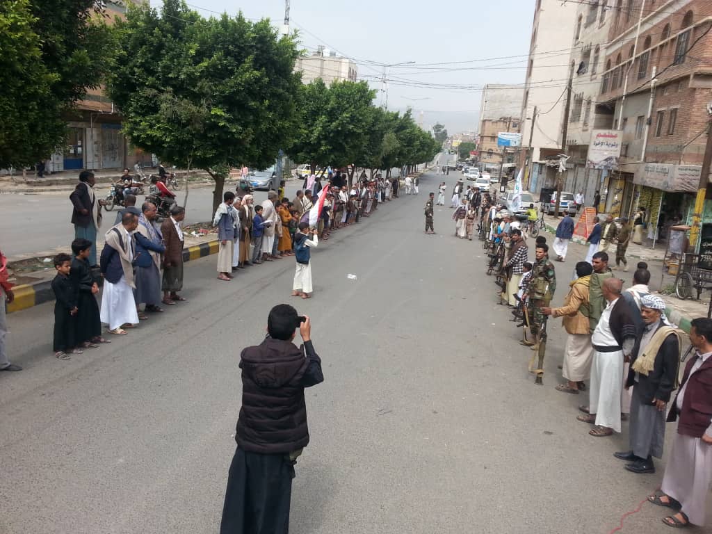 اقام ابناء حي الفتح بمديرية الصافية وقفة مسلحة تنديدا واستنكارا لجرائم العدوان بحق ابناء الشعب اليمني واستمرار الحصار ومنع دخول سفن النفط والغذاء ومنددين بما قام به مرتزقة العدوان في قتل عائلة كاملة من أسرة ال سبيعيان بمحافظة مأرب وكذلك جريمة أستهداف الطيران للاطفال والنساء في محافظات حجة والجوف واستمرار الحصار