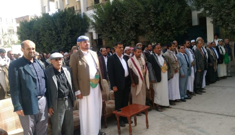 وأكد بأن العدوان والذي بتنا على مشارف العام الثامن لم يفرق بين أحد واستهدف الجميع ولم يستثني أحدا لا في شماله ولا جنوبه مستنكرا ما يقوم به التحالف الأمريكي السعودي الاماراتي من جرائم بحق أبناء الشعب اليمني .