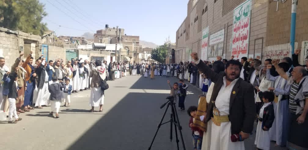 عقب صلاة الجمعة وقفات شعبية حاشدة سرورا وابتهاجا بمناسبة جمعة رجب ذكرى دخول اليمنيين الاسلام وتأصيلا للهوية الإيمانية تحت شعار” الإيمان يمان وابشر بنا يا سيدنا”..