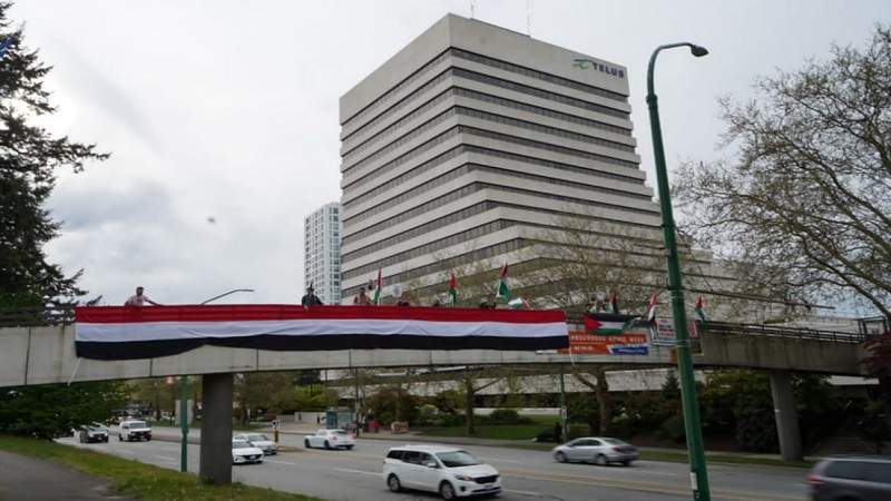 ووقف المتظاهرون على الجسور المطلة على الخطوط الرئيسية للسيارات في طريق عودة عشرات الآلاف من الموظفين الكنديين إلى منازلهم.. مطالبين بوقف العدوان الأمريكي البريطاني عن اليمن.