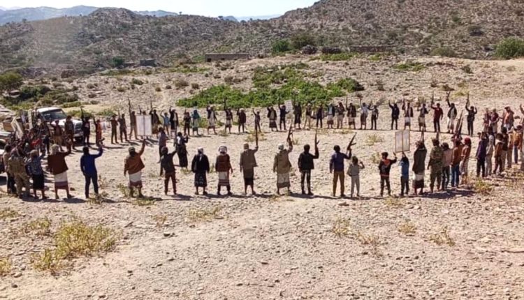 وقفة قبلية في مديرية جبن بالضالع إعلاناً للنفير العام لمواجهة الأعداء