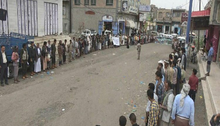 وقفة لأبناء مديرية خدير في تعز رفضا لحصار قوى العدوان لمدينة الدريهمي