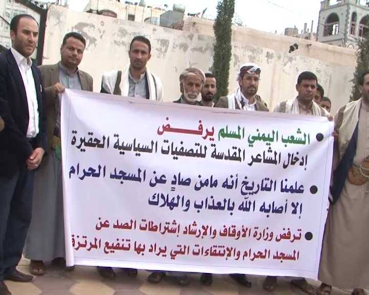 وفي الوقفة ندد المحتجون بما يقوم به النظام السعودي من إذلال، وما يسببه من معاناة يتجرع مرارتها الحجاجُ اليمنيون.