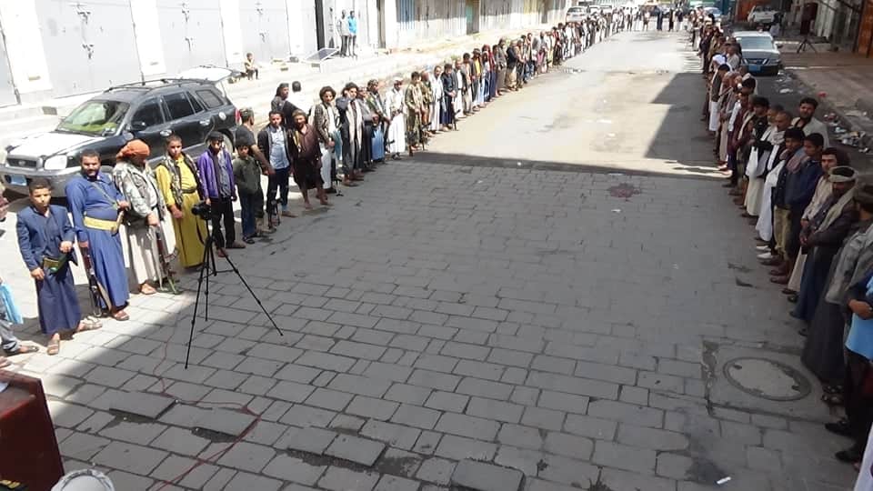 اقام ابناء حي الثورة بمديرية الصافية وقفة مجتمعية مسلحة تنديدا واستنكارا لجرائم العدوان بحق ابناء الشعب اليمني واستمرار الحصار ومنع دخول سفن النفط والغذاء واستجابة لداعي النكف القبلي في مجزرتي عرس النساء بالمساعفة في الجوف وأسرة ال سبيعيان بمحافظة مأرب