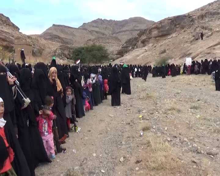 وقفة وقافلة غذائية لحرائر مديرية بني حشيش دعما للجيش واللجان