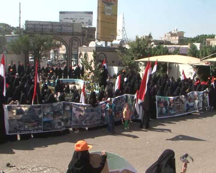 نظمت نساء مديرية الثورة بالعاصمة صنعاء اليوم الثلاثاء وقفة احتجاجية استنكارا لجرائم العدوان وحصاره المفروض على اليمنيين، باعثات برسائل للعالم الأصم وأخرى لأبطال الجيش واللجان الشعبية مصحوبة بقافلة شتوية.