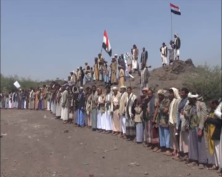 وأكد المشاركون في وقفة قبلية في مديرية صوير أن صوتهم وصفهم واحد لمواجهة العدوان السعودي الأمريكي وجهوزيتهم لصد المعتدين.