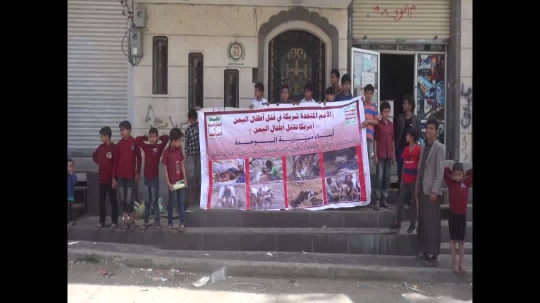وخلال الوقفه التي أقيمت تحت شعار (الأمم المتحدة شريك في قتل أطفال اليمن) ، استنكر الأطفال المشاركون القرار المخزي للأمم المتحدة الذي يدرج الضحايا في قائمة العار لقتلة الأطفال ويبرئ ساحة القتلة الحقيقيين.