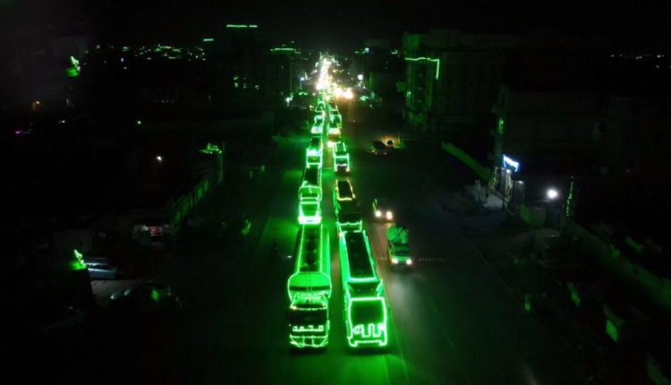 100 قاطرة تجوب شوارع ذمار في مسيرة ضوئية إحتفاء بذكرى المولد النبوي