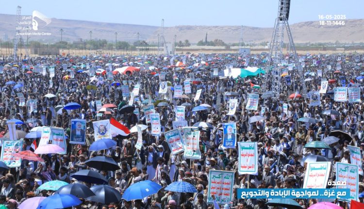 حيث احتشد أبناء المحافظة في بساحة المولد النبوي الشريف بمركز المحافظة، وساحات الشهيد القائد بخولان عامر، وعرو وجمعة بني بحر، وذويب بحيدان، وشعارة والحجلة وبني صياح وبنلقم برازح، وربوع الحدود ومدينة جاوي وبني عباد وولد عمر في مجز، والجرشة بغمر، ومركز مديرية قطابر والجفرة وعضلة، والسهلين والحجر في آل سالم، والخميس وآل مقنع ونيد البارق في منبه، تأكيدًا على الصمود والثبات في إسناد غزة وكل فلسطين.